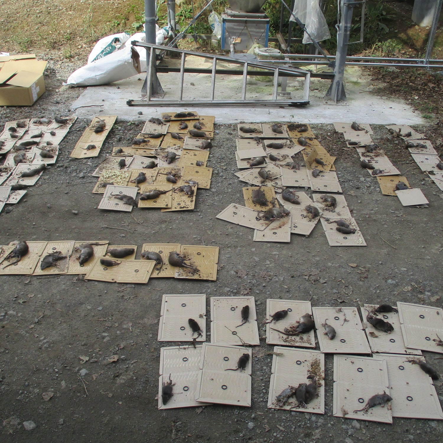 ●ネズミを効率的に捕るにはネズミが歩く場所に粘着シートを敷き詰めて設置するのがコツです。